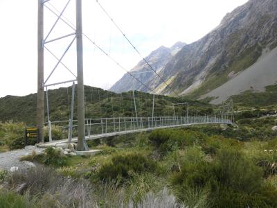 アオラキ・マウントクックをの姿を眺めながらフッカー川にかかるつり橋を3回渡りフカー湖までのこの国立公園で一番人気の気持ちの良いウオーキングトラック。フッカー湖はフッカー氷河から崩れ落ちた氷河が浮いている神秘的な湖。高低差は余りなくシニアにも楽しめるトレック。