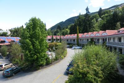 クイーンズタウンのダウンタウンから2km程離れた湖畔の高台にあるリゾートホテル。町へは公営のバス停が近くにあるが我々は毎日湖畔の散策路を歩いて出かけだ。ダイニング・キッチンは広く機材もちゃんとしていた。クイーンズタウンでノンビリ過ごすにはお勧めだがあちこち観光に出るには車が無いと不便だ。