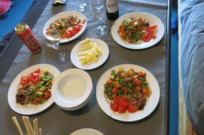ホテルの周囲の新緑の中を1時間程で回れるトレッキングコースが有り、汗をかいた後は2か所の大風呂か谷川沿いの露天風呂でノンビリと疲れをいやした。食事はバイキングだったが刺身や肉の一般的な料理の他に山菜料理の小鉢がお酒のつまみに最高だった。