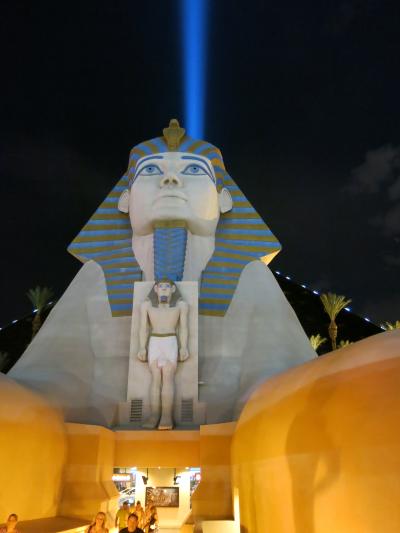 エジプトの砂漠のスフィンクスとラミッドを模った角錐の高層のホテルからなるリゾート&カジノ・ホテル。外からの景観はユニークで面白いが、ホテル機能としては不便だった。構造上レストランや売店のスペースが小さいため数が少く隣にあるマンダリンベイやエクスカリバーホテルを利用した。部屋も古く、ガラス張りのピラミッドの窓も汚れていて景観が楽しめなかった。