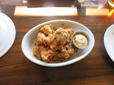 アムトラック(AMTRAK)メトロリンク(METROLINK)のフラトン(FULLERTON)駅前にあるメキシカンテイストのモダン アメリカ料理!?!?!がキャッチフレーズのカジュアルレストラン。注文カウンターで注文し室内、屋外に席が有り気に入った席に待っているとそこまで若いウエイトレスが持ってきてくれる。メキシカン料理と云うとタコスやブリトーを連想するが全然違ったまさにモダンアメリカ料理だ。私たちはカリフラワーフリッタ、マンチェゴサラダ、ローストチキンを注文して二人で食べたが量は十分で味は最高だった。(写真参照)生ビールを一杯ずつ飲んで税金、チップを置いても50ドルしなかった。