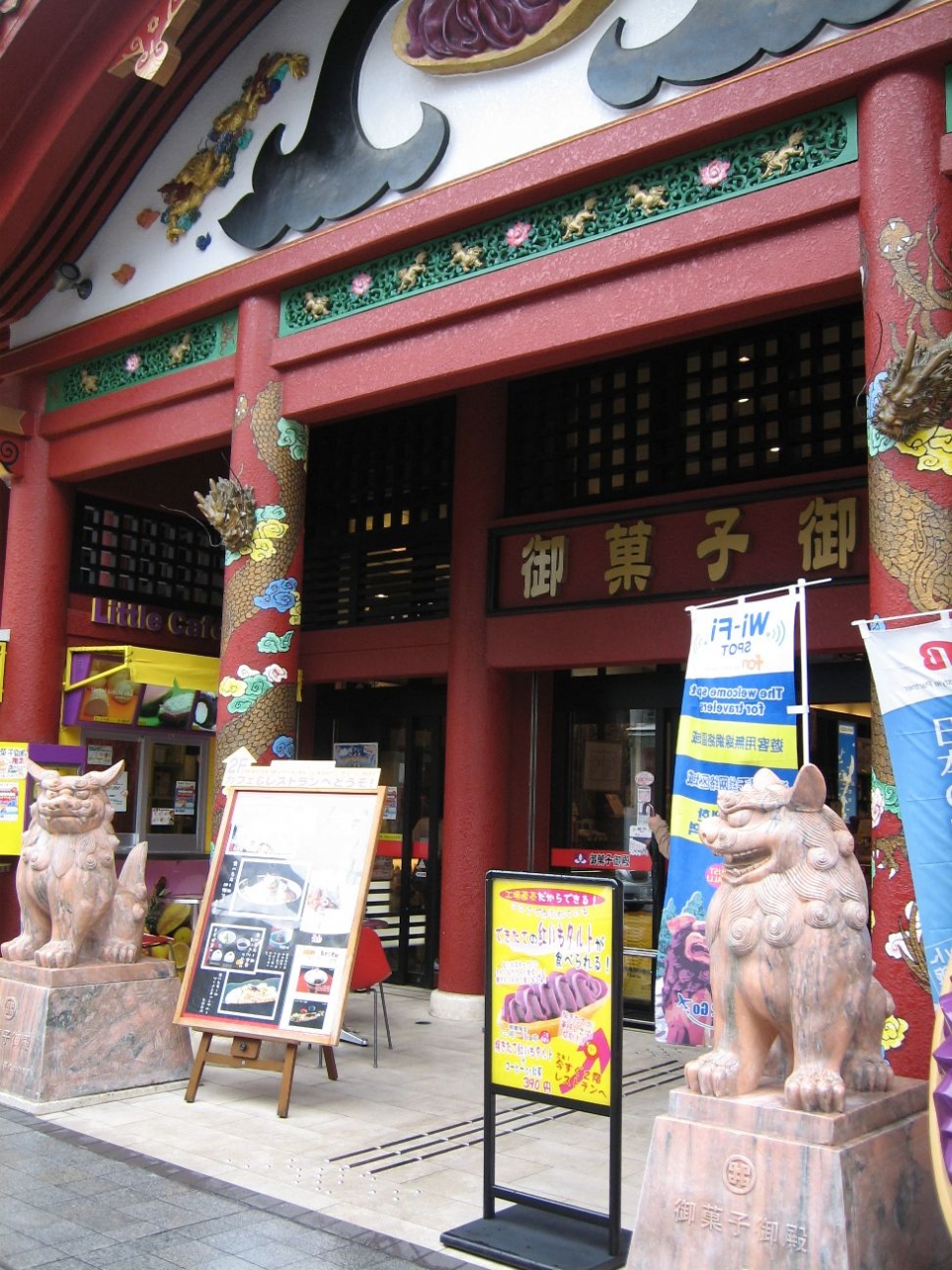 国際通りの商店街にあります。あの有名な紅芋タルトのお店です。