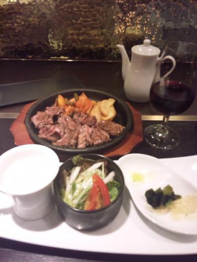 ヘレステーキランチ(120g) 1,780円とワインで、お昼から満足です。- 旅行時期