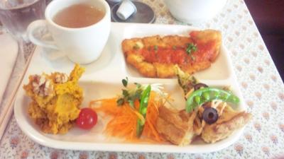 ワンプレートの日替わりランチは前菜とメインが選べて830円。ドリンクもついてます。- 旅行時期