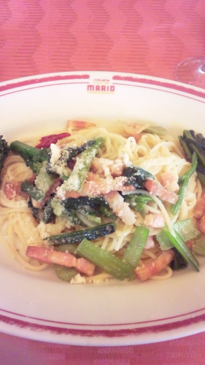 パスタ、ピザなどのメニューが豊富で、前菜がビュッフェ形式になっていて、サラダだけでなく、種類も豊富なので、前菜だけでもおなかいっぱいになりそうです。