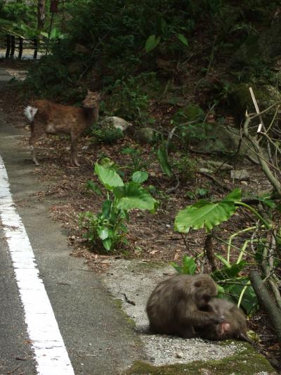 動物注意の看板があるとおり、屋久鹿・屋久猿に遭遇します♪