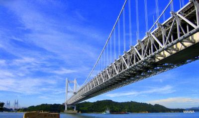 橋の上部は4車線の瀬戸中央自動車道が走り下部にJR瀬戸大橋線が通る鉄道道路併用橋として、総事業費1兆1300億円と9年6ヶ月に及ぶ工事期間をかけて1988年4月10日に開通しました。うどんを食べながらノンビリと船旅の出来る宇高連絡船が廃止となったことは残念ですが、ドライブに鉄道旅行に出張に自由度の高い瀬戸大橋は、瀬戸内海の多島美を360度で堪能できる抜群の眺望から橋を通ること自体が観光としても十分に楽しめます。- 旅行時期