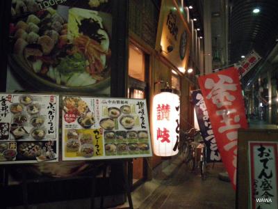 大阪出張の夜、初めて歩いた南森町駅周辺のアーケード街(天神橋筋商店街)で、派手な看板につられて入ったうどん屋がこのお店。既に居酒屋を2軒巡っていたので目が欲しいだけ。小かけうどんを頼むと何と100円でした。讃岐うどんの本場、讃岐高松をも凌ぐこの値段に驚き味の事は忘れましたが、少々美味しくなくても100円なら文句は言いません。