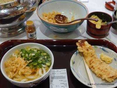 倉敷美観地区の観光を終え、児島ICから瀬戸大橋を通り、瀬戸内海や瀬戸大橋の眺めが抜群の与島パーキングエリアで休憩のついでフードコートで美味しい讃岐うどんを頂きました。イカ天ぷら付けても500円ほどと驚くほどのコストパフォーマンスです。