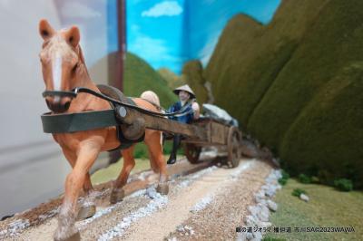 生野銀山に向かう途中で播但連絡道路の市川サービスエリアに立ち寄りました。朝8時だったため、SA内の店舗営業は中途半端な状態でしたが、お土産を買って日本遺産に認定された「鉱石の道」関連の展示解説やリーフレット類を頂くことは出来ました。