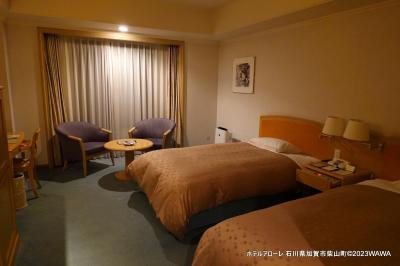 柴山潟の北岸にあるホテルアローレは、南岸にある加賀温泉の町並み(温泉街?)とは離れた場所にありますが、建物近くに広い駐車場があるので自動車でのアクセスは便利でした。日も暮れてからのチェックインで、翌日も早朝にチェックアウトしたのでまさに寝るだけですが、何の問題もありませんでした。