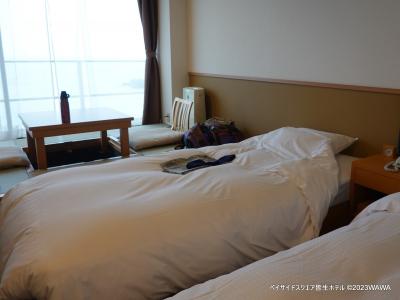 レンタカー利用だったので、駐車場が便利なホテルが良いと、皆生温泉の海沿いの宿を探し「ベイサイドスクエア 皆生ホテル」に決めました。
