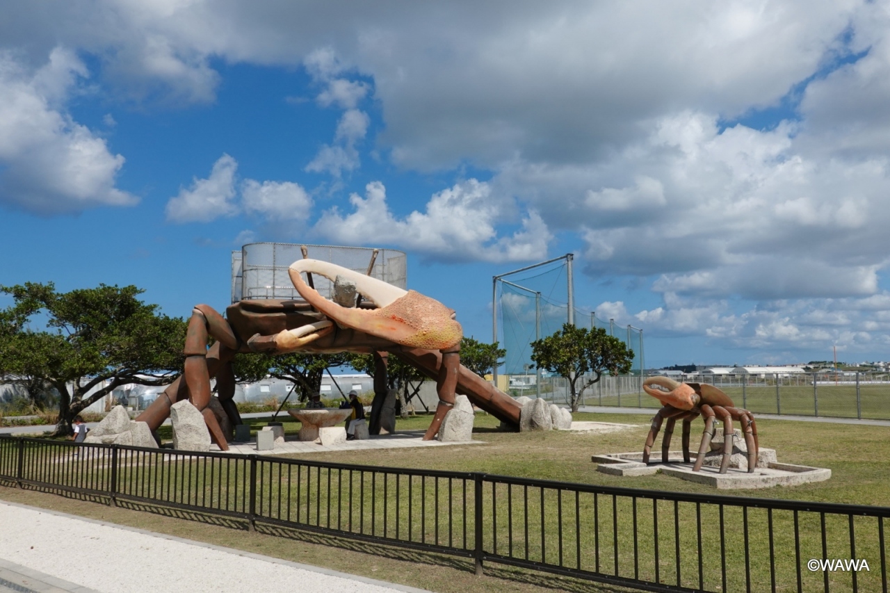 天気も良かったのでレンタカーを借りてすぐ瀬長海中道路(無料)を通って瀬長島へ渡りました。4トラに観光ポイントとして登録されていませんが、島中央の高台にある瀬長島展望エリア(瀬長島サンセットパーク)から、海、ビーチはもとより、飛行機の離着陸、滑走路、那覇空港などの眺めを楽しみました。