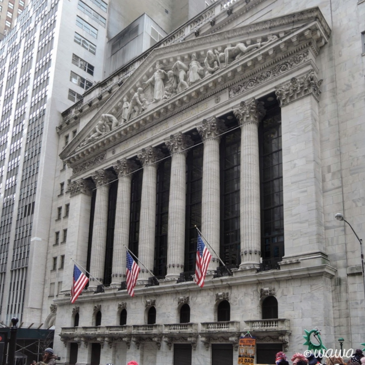 狭い街路に大きなビルが建て込むウォール街の一角にある建物です。日曜日の訪問だったことから、ニューヨークの証券マンなどの姿はなく私達同様観光客であふれていました。映画や小説の世界では度々に渡って悪者の襲撃を受けている地区なので、物々しい警備も妙に納得してしまいました。