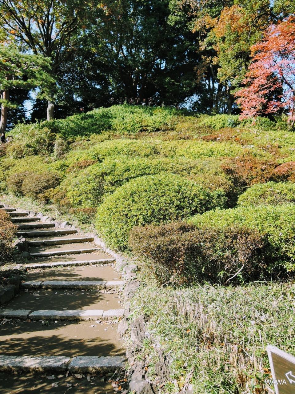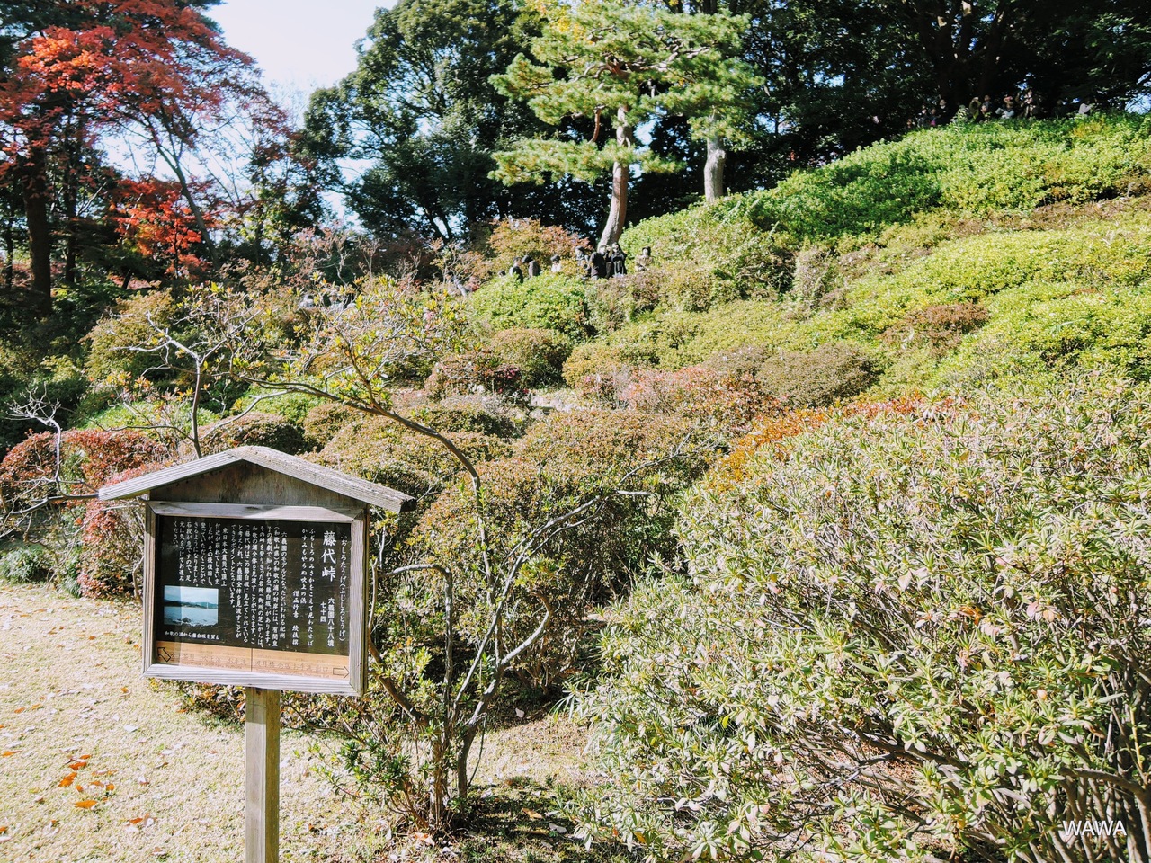 藤代峠もその一つですが、池に浮かぶつつじ山の高台から庭園全体を見渡す景色が良いことで知られるビューポイントです。訪問時は晩秋でしたが、花の季節には藤代峠自体が見所となるようです。