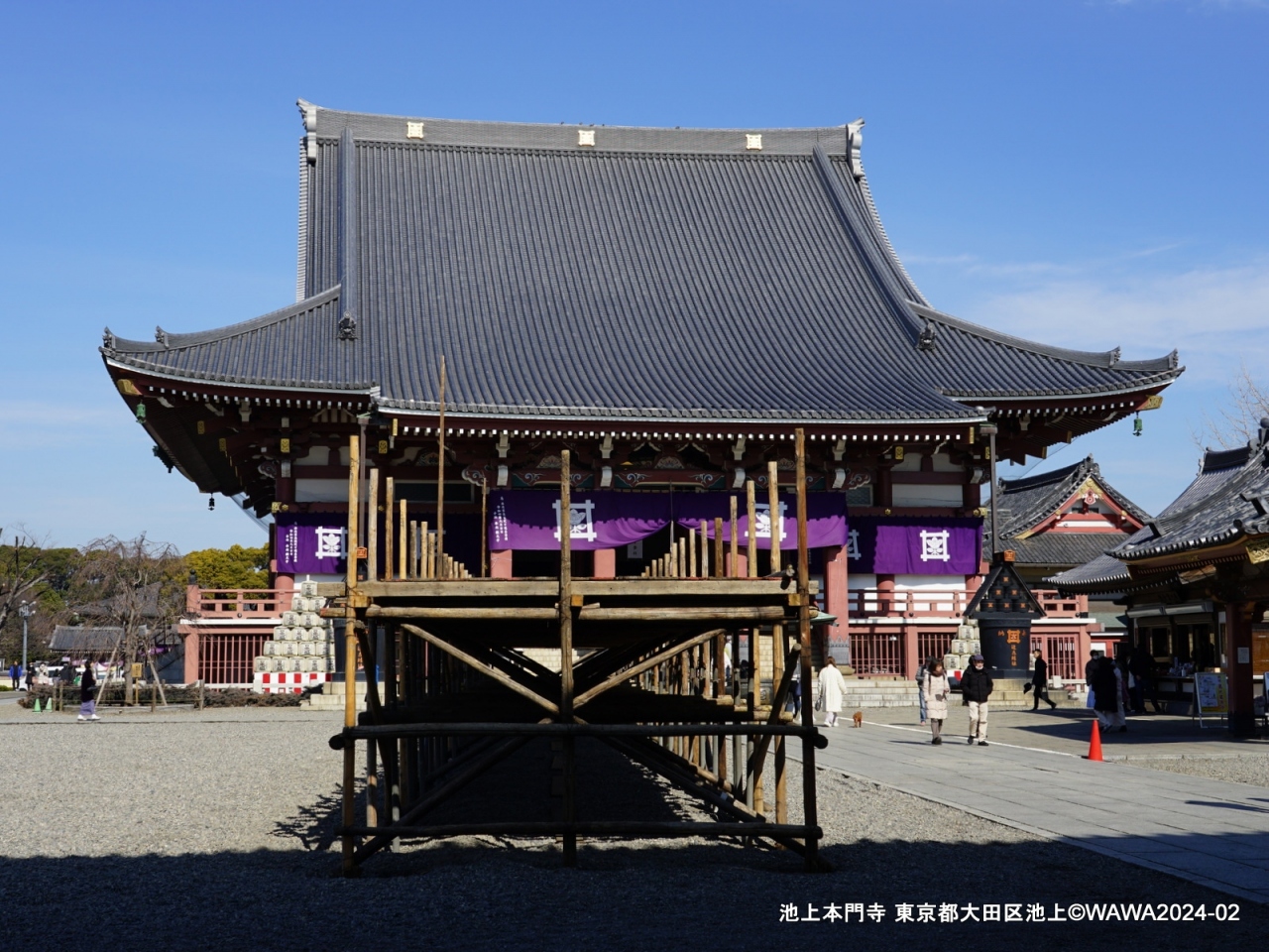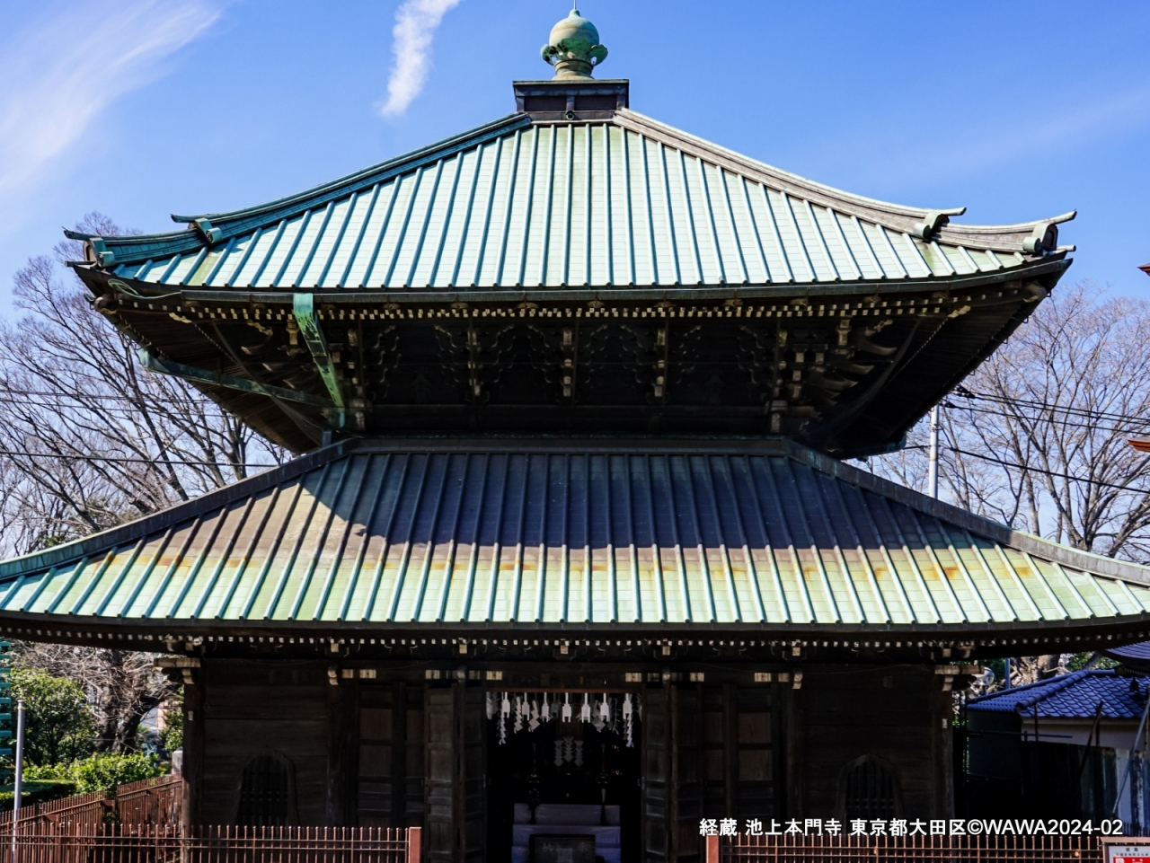 池上本門寺参拝の最後に江戸中期の天明4年(1784年)に建てられた経蔵を外観見学しました。第二次世界大戦のアメリカ軍による空襲も免れた池上本門寺の中では古い建物です。