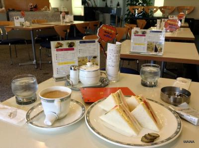 警察共済組合が運営しているホテル「プリムローズ大阪」の中にある喫茶店アクアヴェールは、モーニング300円、昼間のコーヒー200円とホテル内という事を考えると破格の安さです。更にテーブルで煙草を吸うことが出来るのも大変助かります。