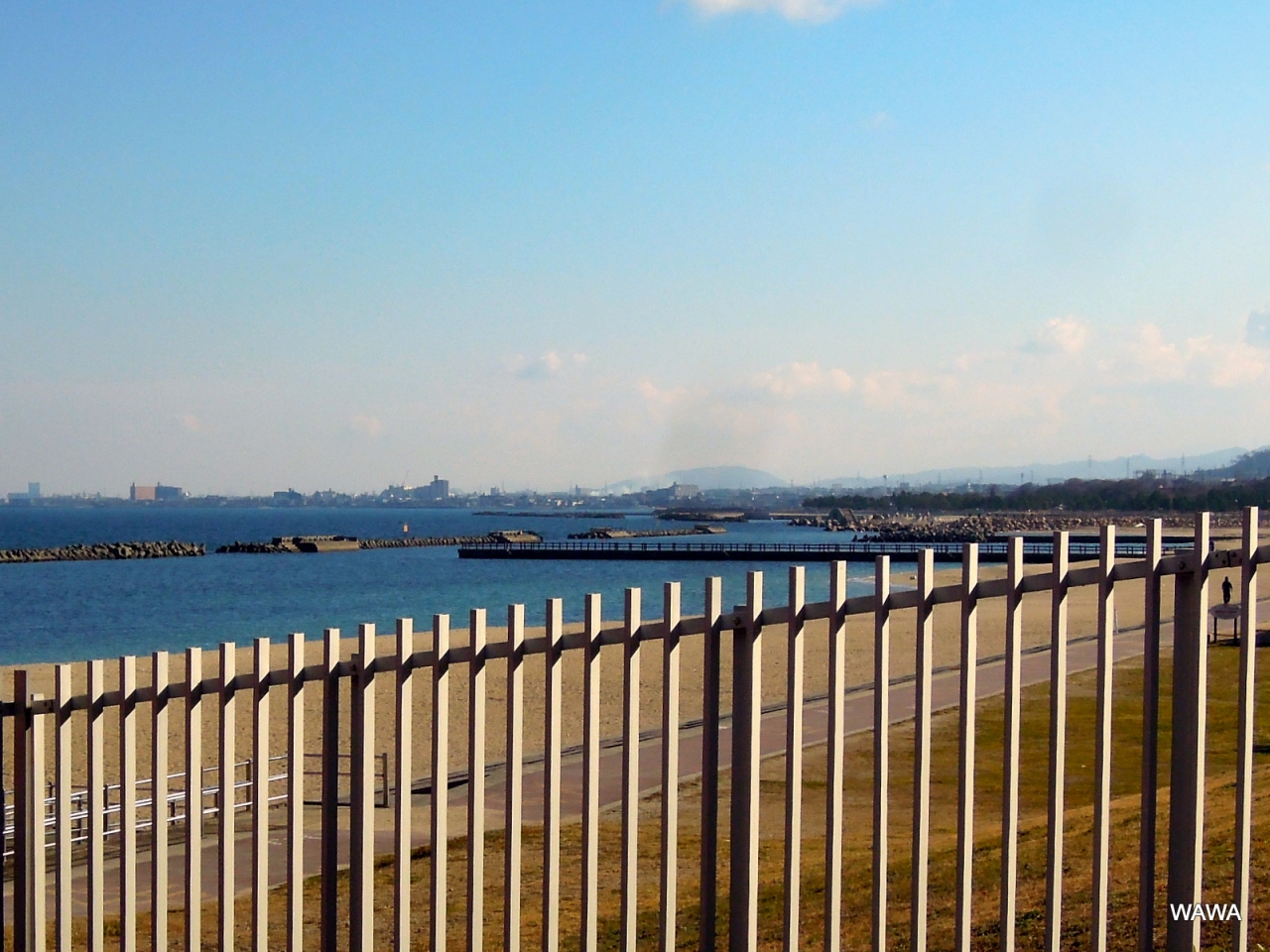 南海電車の線路と立体交差する立派な道路が付いていますすが、有料パーキングが立ちはだかって海すら見ることが出来ませんでした。夏のシーズンならいざ知らず、冬の寒空に1回500円とか600円の駐車料金を徴収する公共ビーチがあることを知ってビックリしました。
