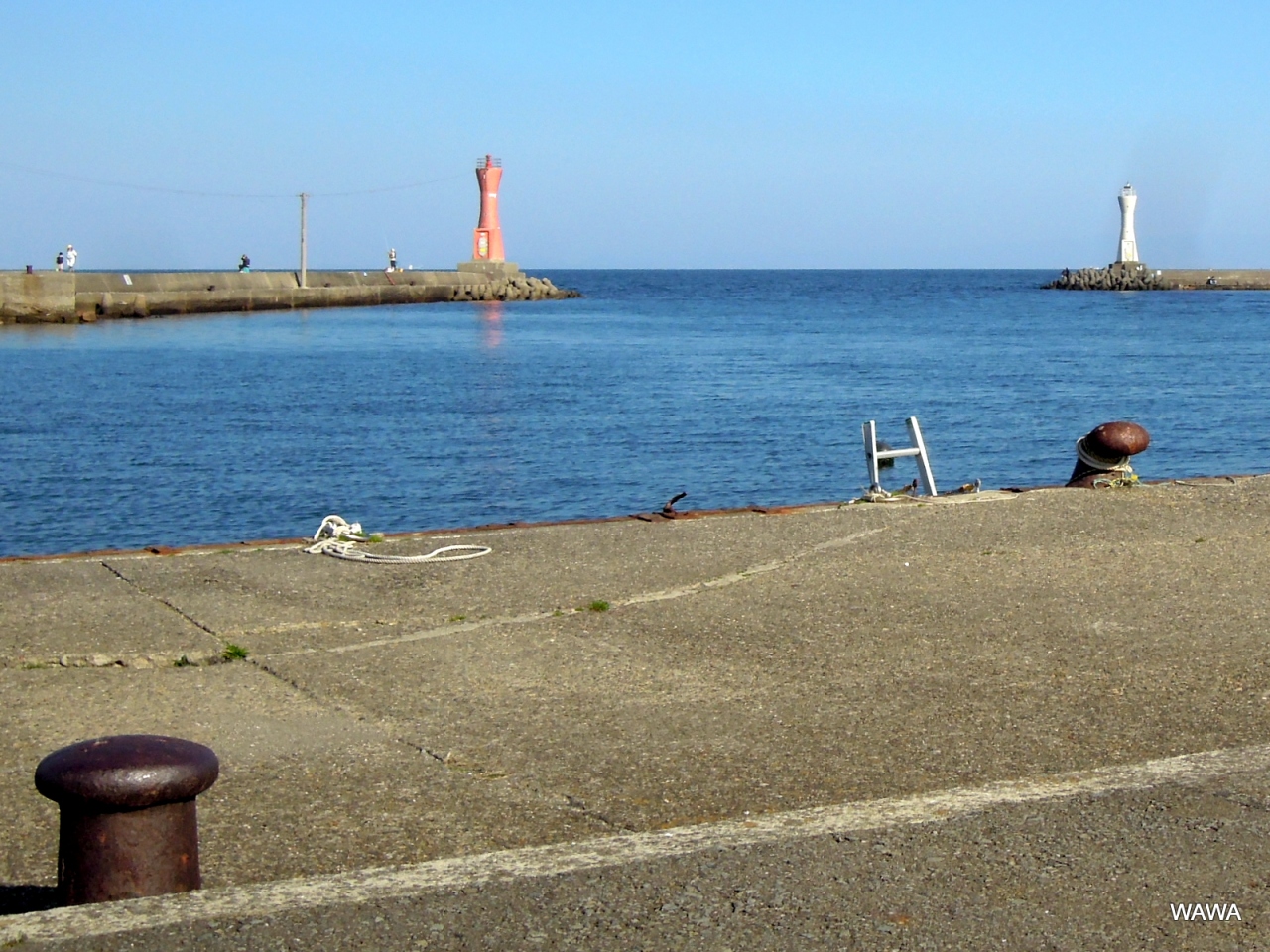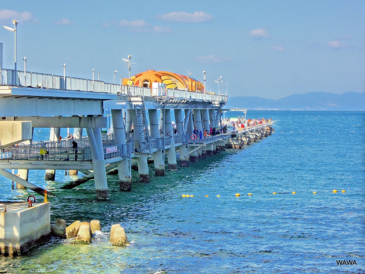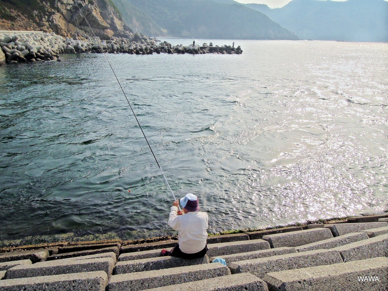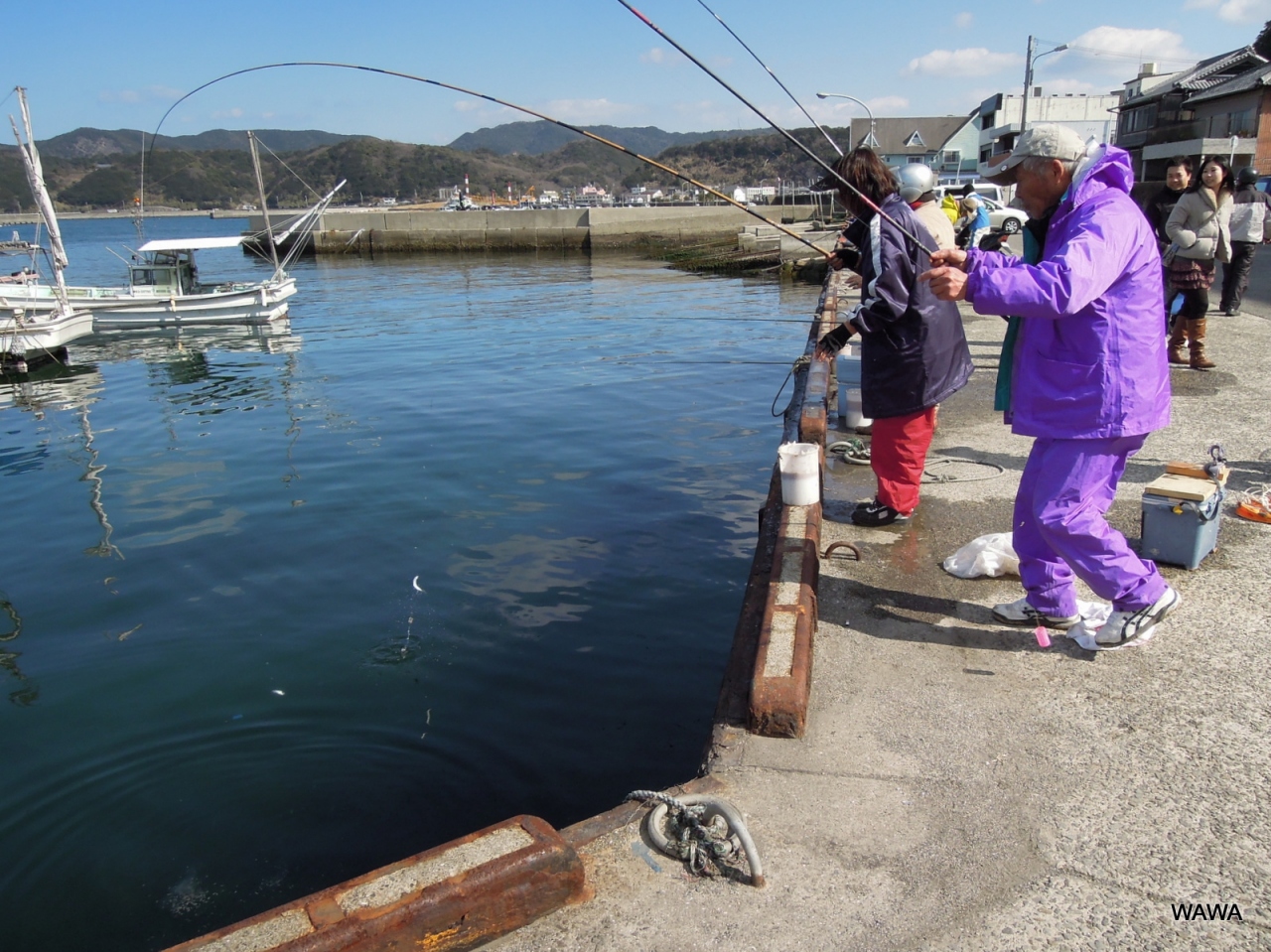 道の駅 とっとパーク小島には、大きく海に張り出した立派な釣桟橋(有料)があります。釣り場は3メートル以上の高さがあるので大物などには長い柄の付いたタモ網が必要ですが、周囲には漁礁が設置されるなど、冬でも早朝から整理券を配るほど人気があるようです。駐車場も釣客で満車がちで、道の駅としての機能は幾分麻痺しています。