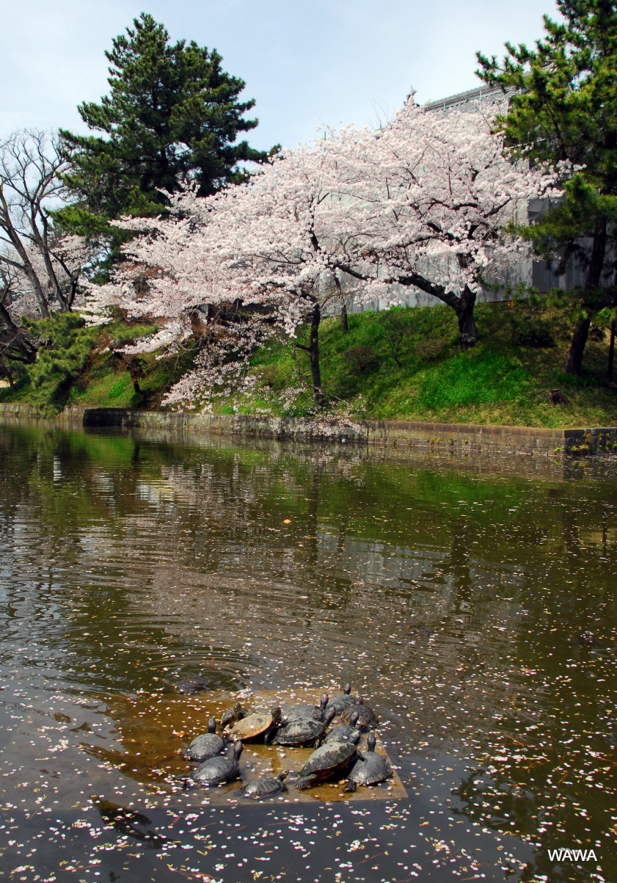 旧土浦城の本丸と二の丸の一部が亀城公園になっているとのこと。大きな鯉や亀が泳ぐ美しい掘割に沿って桜の木が沢山植えられており桜の名所としても有名なお城です。訪問時は桜の季節でしたがお城の改修時期と重なり今一つでした。