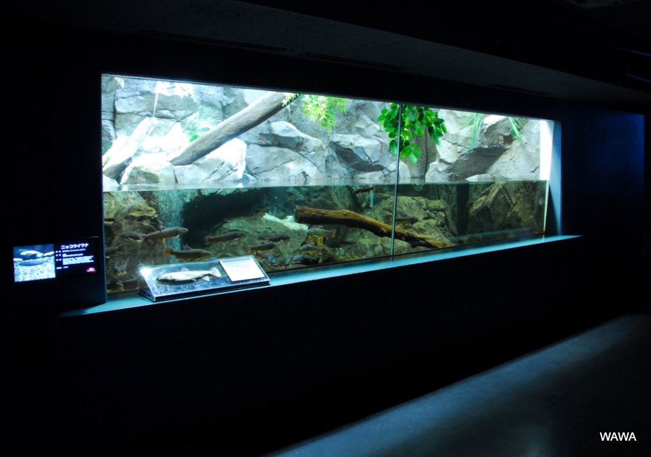霞ヶ浦の魚は押さえているのでしょうけれど、それだけに留まらず海水魚や熱帯の魚が飼育されているのは近隣の小学生用でしょうか?