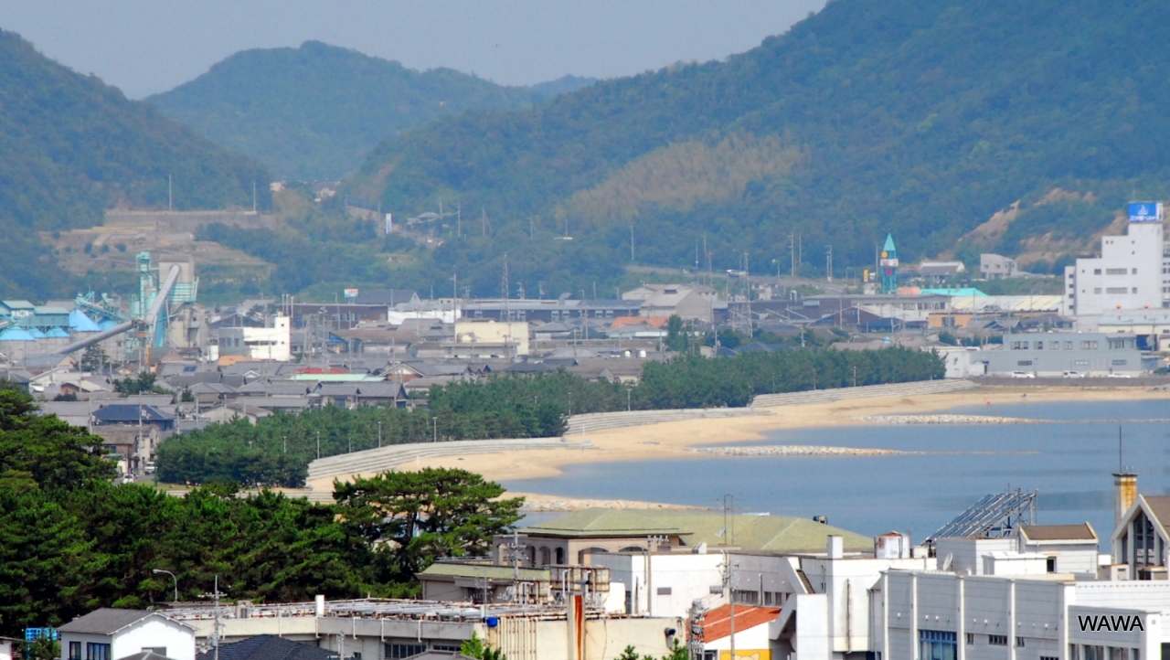 海沿いの美しい景色で有名な瀬戸内海国立公園の中でも、樹齢六百年にもなる老松を含む美しい松林やその向こうに見え隠れする白い砂浜や青い海がある津田の松原は、名勝として日本の渚百選にも選ばれています。夏には一帯が海水浴場として家族連れなどで賑やかになります。