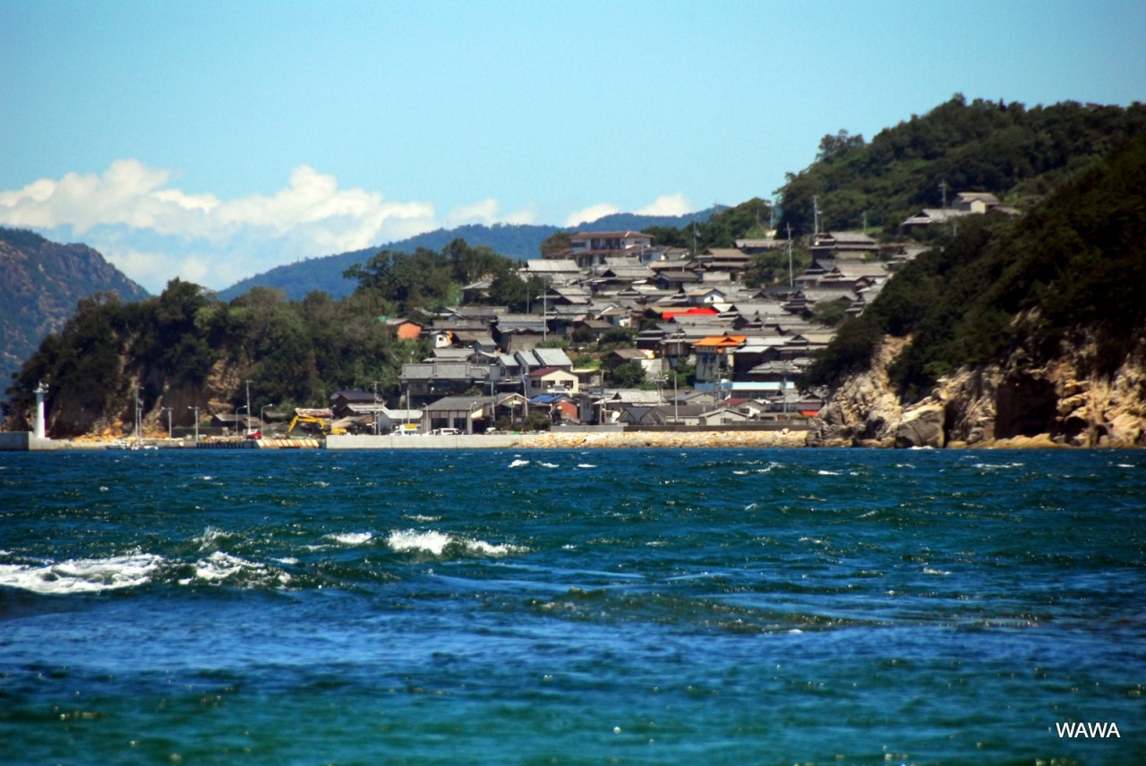 男木島(おぎじま)は、周囲4.7km、人口約200人ほどの瀬戸内の島です。高松港から桃太郎伝説で有名な鬼が島(女木島、めぎじま)経由で40分ほど、定期船が1日に何往復もしていますので意外と簡単に訪れることが出来ます。平地が少ないことから、島の家々は段々畑のように斜面に沿って建て込んでいます。島の北端部には「喜びも悲しみも幾年月」という名作映画の舞台になった石造りの灯台や資料館もあり、釣りや海水浴だけでなく瀬戸内海観光にも最適な島の一つです。
