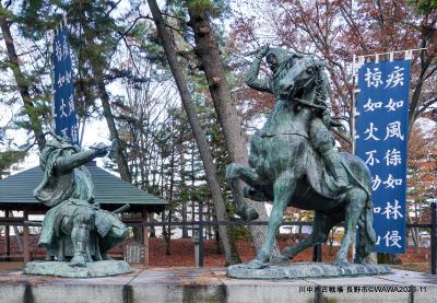 朝一番の善光寺詣での次に諏訪湖方面への移動途中で、川中島古戦場跡に造られた川中島古戦場史跡公園に立ち寄りました。