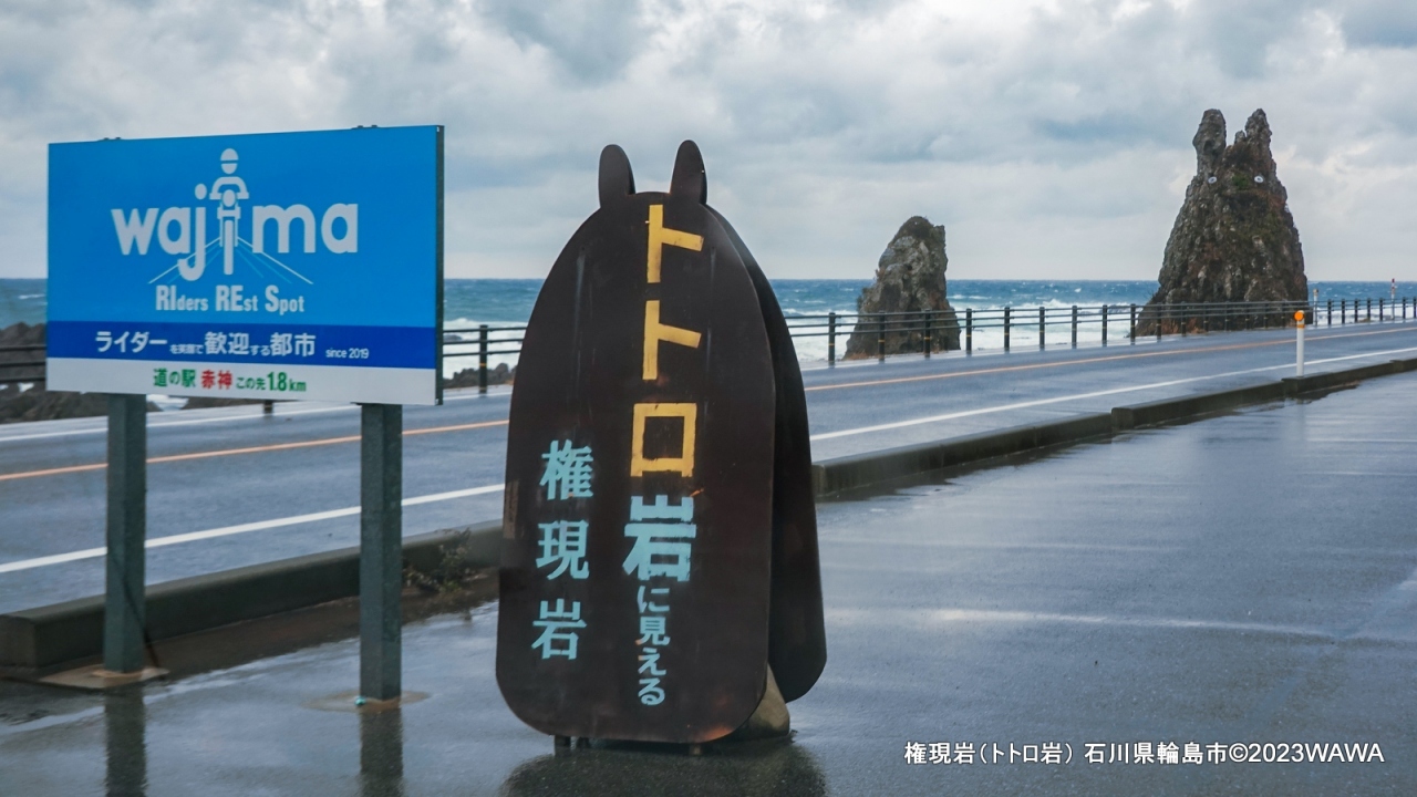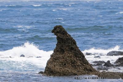 能登半島一周ドライブの途中で、能登金剛エリア観光を終え海沿いを北上し、輪島市黒島地区重要伝統的建造物群保存地区の途中でトトロ岩こと剱地権現岩に立ち寄りました。
