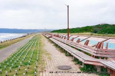 走っている道(国道249号)から、そのまま見える名所なので広くなった路肩の様な駐車場に停め名物岩礁を眺めました。- 旅行時期