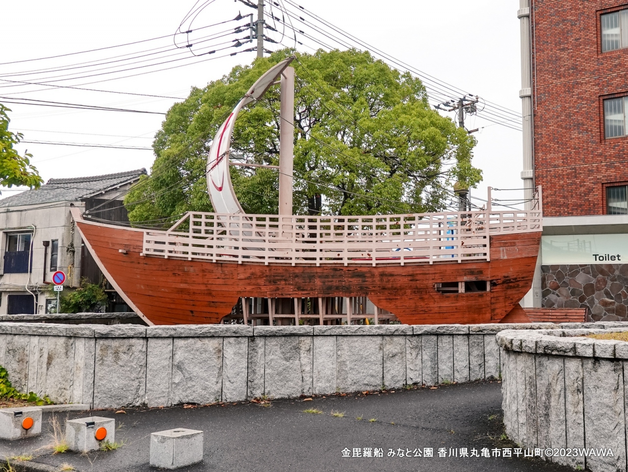 みなと公園とも言われる新堀湛甫親水公園は、金毘羅船イメージした大きな船型遊具を始め公園先端部には太助灯籠(巨大な金毘羅灯籠)や瀬山登像などの見所が集まっています。そもそも「新堀湛甫(しんぼりたんぽ)」と言う言葉自体が、金毘羅参詣客の増加を意識して天保3年(1832)に丸亀藩が新しく建設した港(船溜まり)と言う意味だそうです。