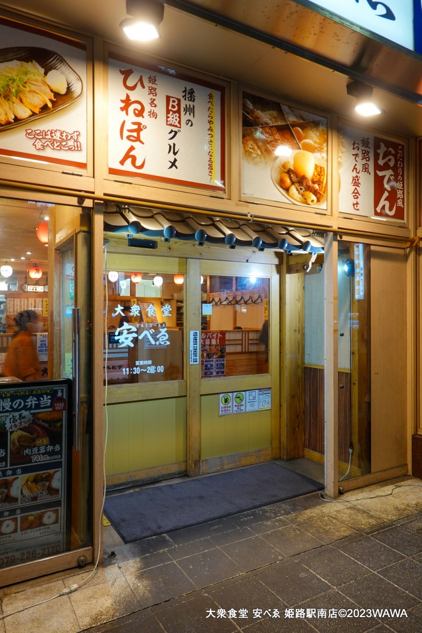 姫路駅から沢山のアーケード商店街を経由して姫路城を往復する散策を終え、ホテルに戻る前に、同じ姫路駅南口で姫路名物「姫路おでん」と「ひねぽん」を肴に一杯飲みました。