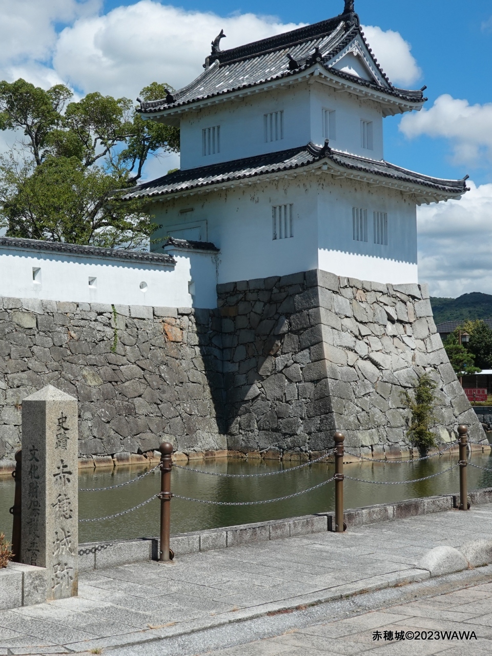 忠臣蔵などストーリーは多い赤穂藩ですが、赤穂城自体は天守閣も無く、小さな櫓がチラホラ程度で見るべき建物はほとんど無く、折からの猛暑で広い赤穂城公園を歩くことも出来ないので、城内の博物館見学と大石神社への参拝が中心となりました。