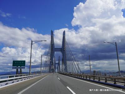 赤穂市観光を終え、下道で岡山県を抜け瀬戸大橋で香川県に入りました。岡山県方向からの瀬戸内海は逆光になることが多く車窓からの景色は今ひとつですが、塩飽諸島を始めとする多島海・多島美は何時見ても素晴らしい眺めです。