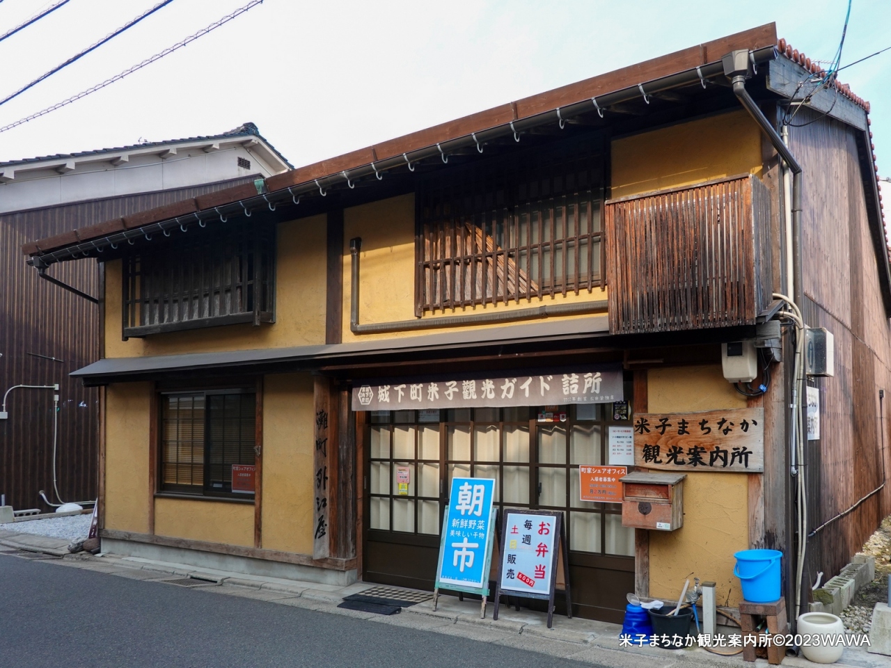 米子まちなか観光案内は、旧加茂川にかかる京橋近くの町家をリノベーションした施設です。宿泊先の皆生温泉から車で15分ほど、朝7時の早朝訪問だったため入場は出来ませんでしたが売店もありました。数台停められる駐車場に車を停め、ここを軸に米子に遺る古い町並み散策を楽しみました。