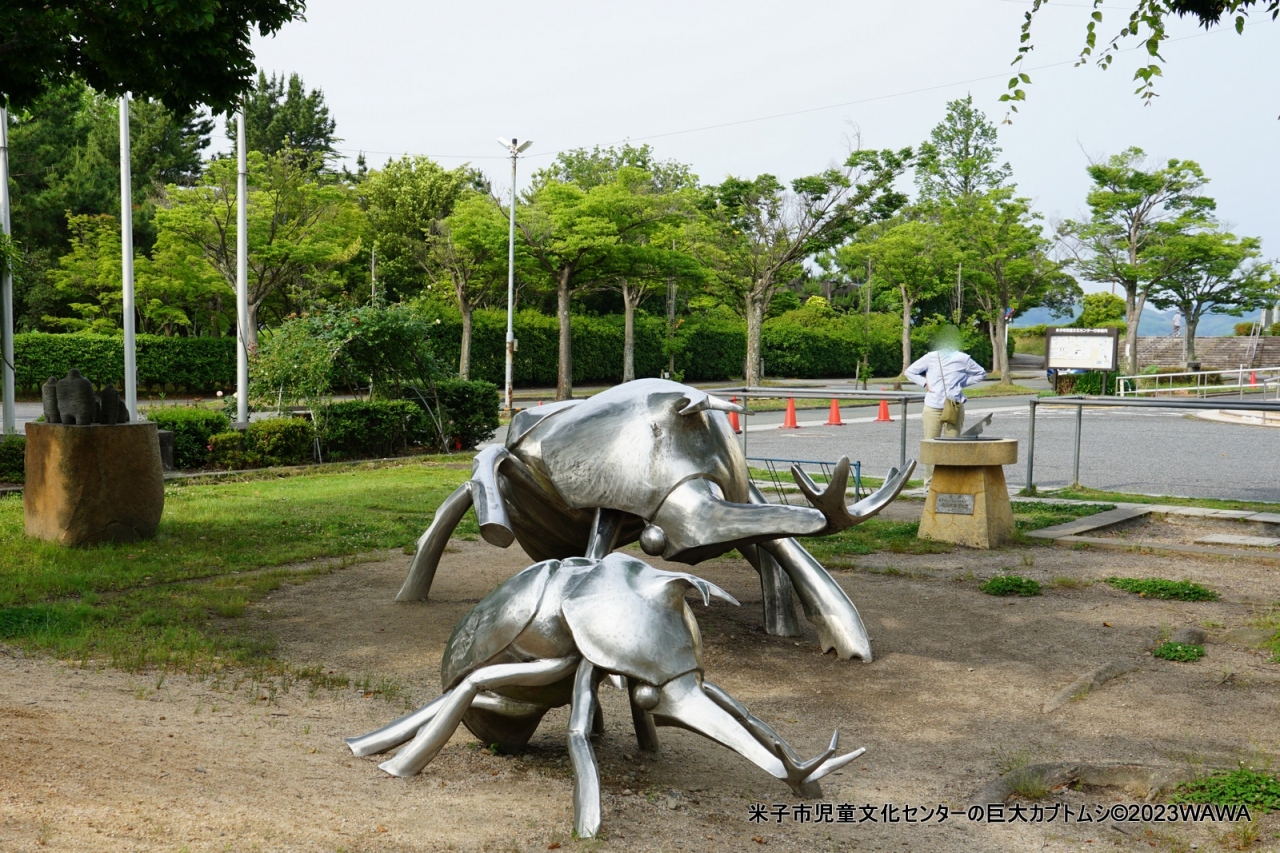 早朝訪問の為、米子市児童文化センターの建物内部には入れませんでしたが、敷地内のに点在するカブトムシ像を始めとするモニュメントを見て回ることは出来ました。- 旅行時期