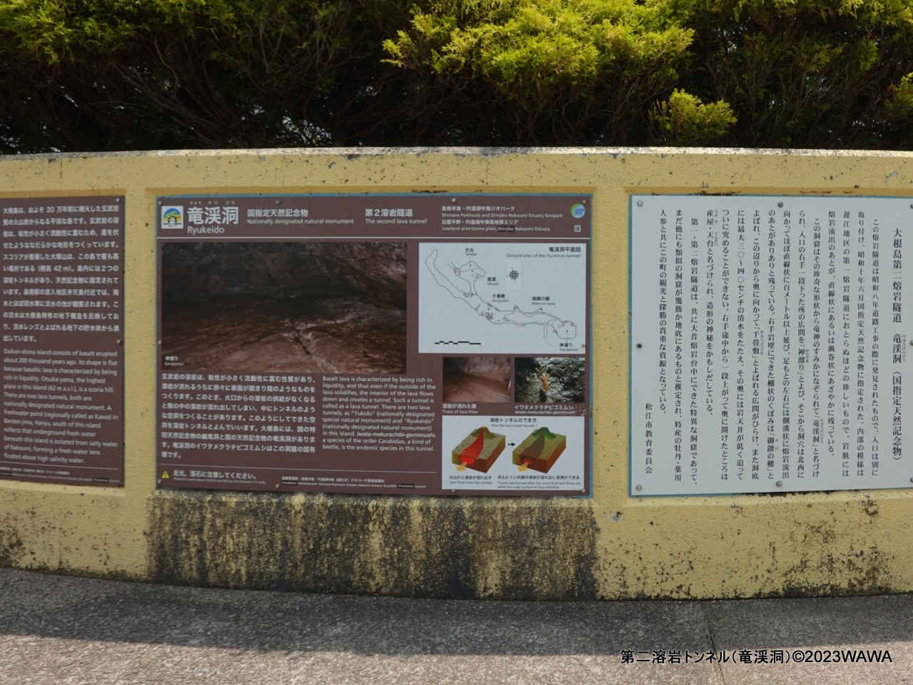 境港駅から江島大橋を渡り足立美術館に向かう途中で、道路に案内板があったことから溶岩トンネルこと大根島第二溶岩隧道 (竜渓洞)に立ち寄りました。