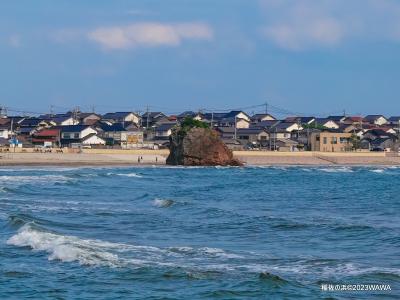 出雲日御碕灯台に向かう途中で、海の北側から稲佐の浜を眺めることが出来ました