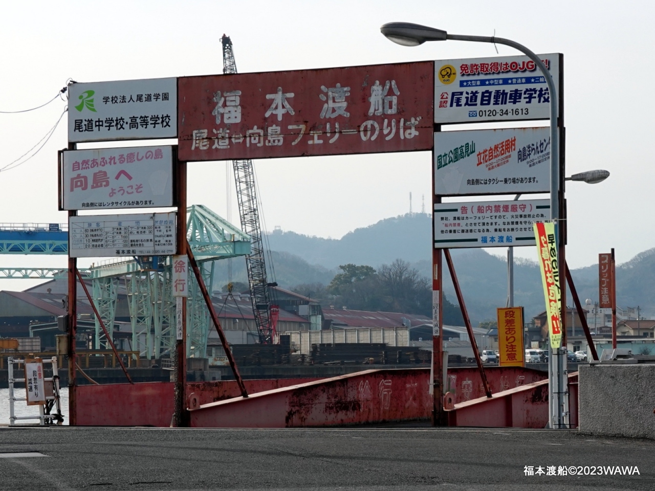 尾道沖の離島「向島」への渡船です。離島とは言えすぐ先にある尾道大橋で道路でつながっている元離島にもかかわらず幾つもの渡船が残っているのは不思議でしたが、5分100円と言う手軽さなどもあるのでしょうか?
