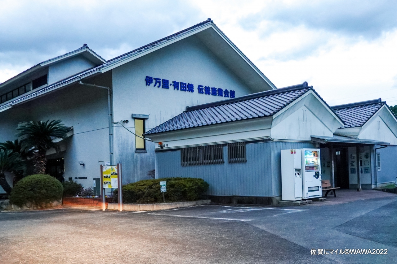 有田の街並み散策をの次に大川内山の町並みを目指して「伊万里 有田焼伝統産業会館」をカーナビ目的地に設定しました。到着時には17時を回っていたので館内見学は出来ませんでしたが、焼物がアレンジされた付近の景色や町並みを楽しむことは出来ました。