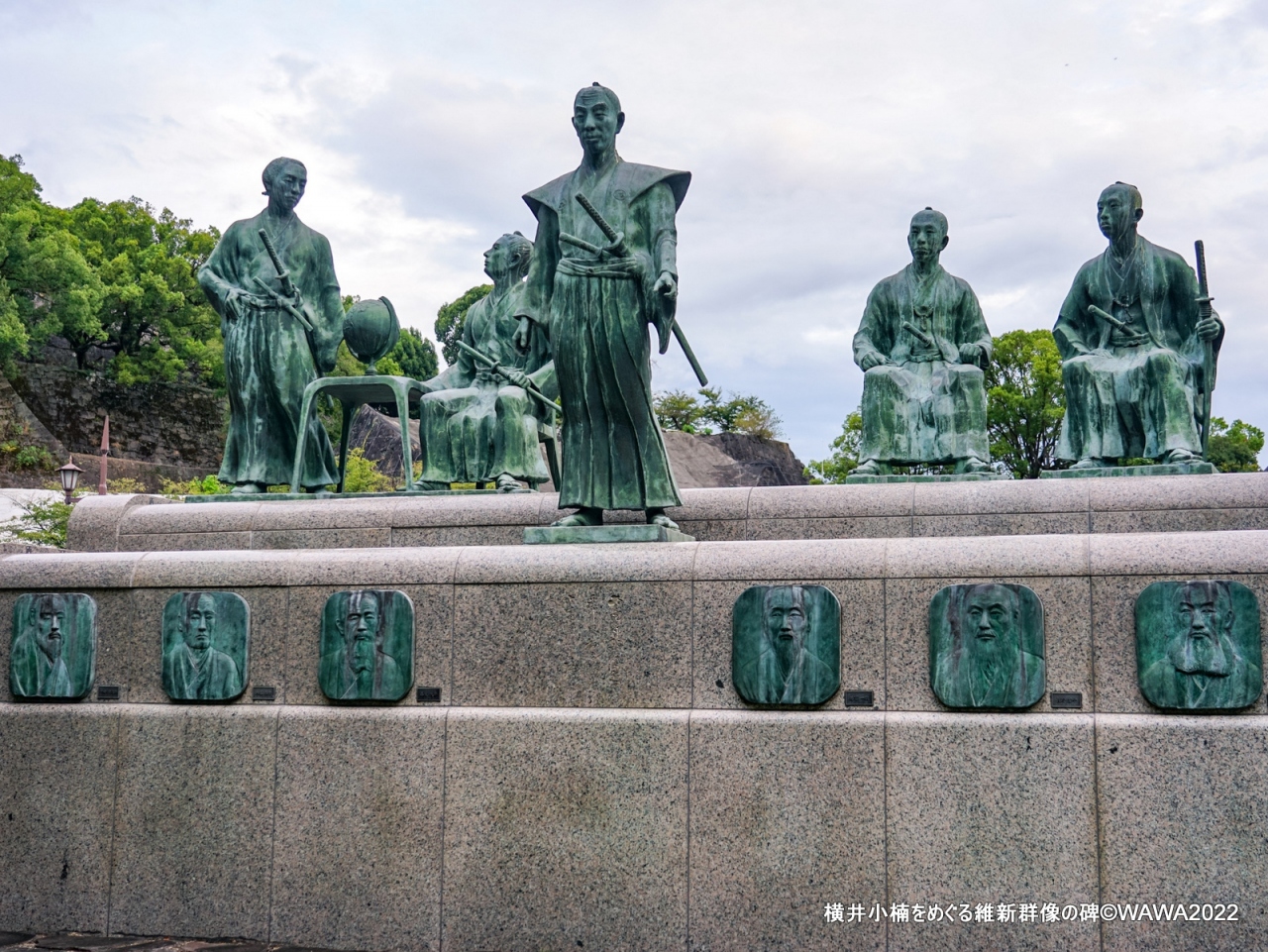 熊本市内のホテルから熊本城の周りを早朝散歩した時に立ち寄った高橋公園にある明治維新関係者の銅像群です。熊本藩士で儒学者の横井小楠を中心に、坂本龍馬、勝海舟、松平春嶽、細川護久の5人の有名人が並んでいました。
