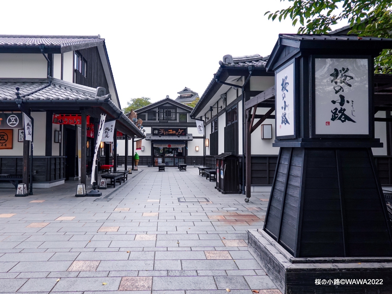 熊本市内のホテルから熊本城の周りを早朝散歩した時に立ち寄った熊本城関連のショッピングモール(飲食モール?)です。早朝の為、全てのお店は開いていませんでしたが、昔風の建物を再現した街並みと熊本城の櫓を合わせて楽しむことが出来ました。