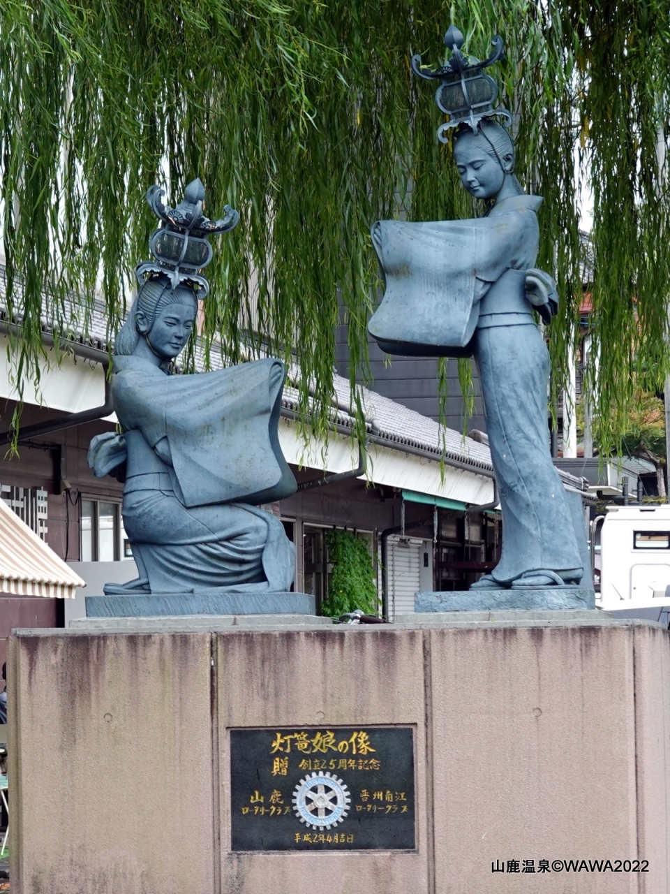 肥後細川藩の山鹿御茶屋に端を発する山鹿温泉のさくら湯は、八千代座近くの銭湯(入浴施設?)で、破風のある立派な伝統建築なので外観を眺めているだけでも旅行気分に浸れました。1640年(寛永17年)の完成時には剣豪・宮本武蔵を招待したとのことで、敷地内には宮本武蔵像がありました。