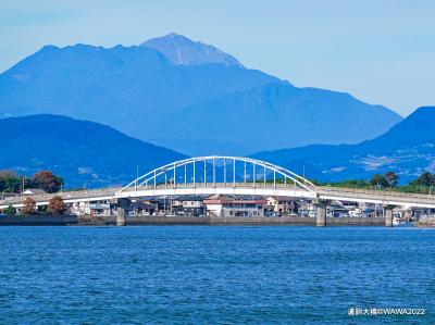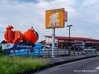 通詞島の南にある大きな道の駅です。島原半島と天草下島で挟まれた有明海の入口の様な場所です。海峡の様な地形からか、沖合にイルカが群れることからイルカウォッチングが盛んなようで、道の駅の飾りもイルカ一色でした。