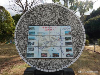 長崎自動車道の山浦パーキングエリアは、福岡空港からレンタカーで佐賀県内旅行に向かう途中で最初に立ち寄った場所です。トイレと自販機程度の小さなパーキングエリアでしたが、庭先の観光案内板は陶板製の凝ったもので旅行気分を盛り上げてくれました。