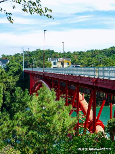 天草パールラインの天草五橋は、最初の三角から大矢野島へ渡る天門橋(1号橋)を除いて4つの橋が連続していました。