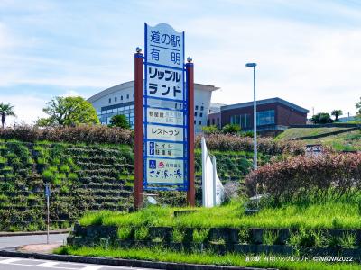 道の駅 有明リップルランドから連絡橋で接続されている、有明海に面した「ありあけオクトパ~ク」には、タコの石碑「天草有明五多幸」やモニュメント「ありあけタコ入道」が設置されています。この前の道は「ありあけタコ街道」と名付けられるなど、タコ一色でした。
