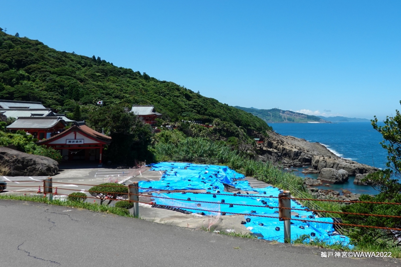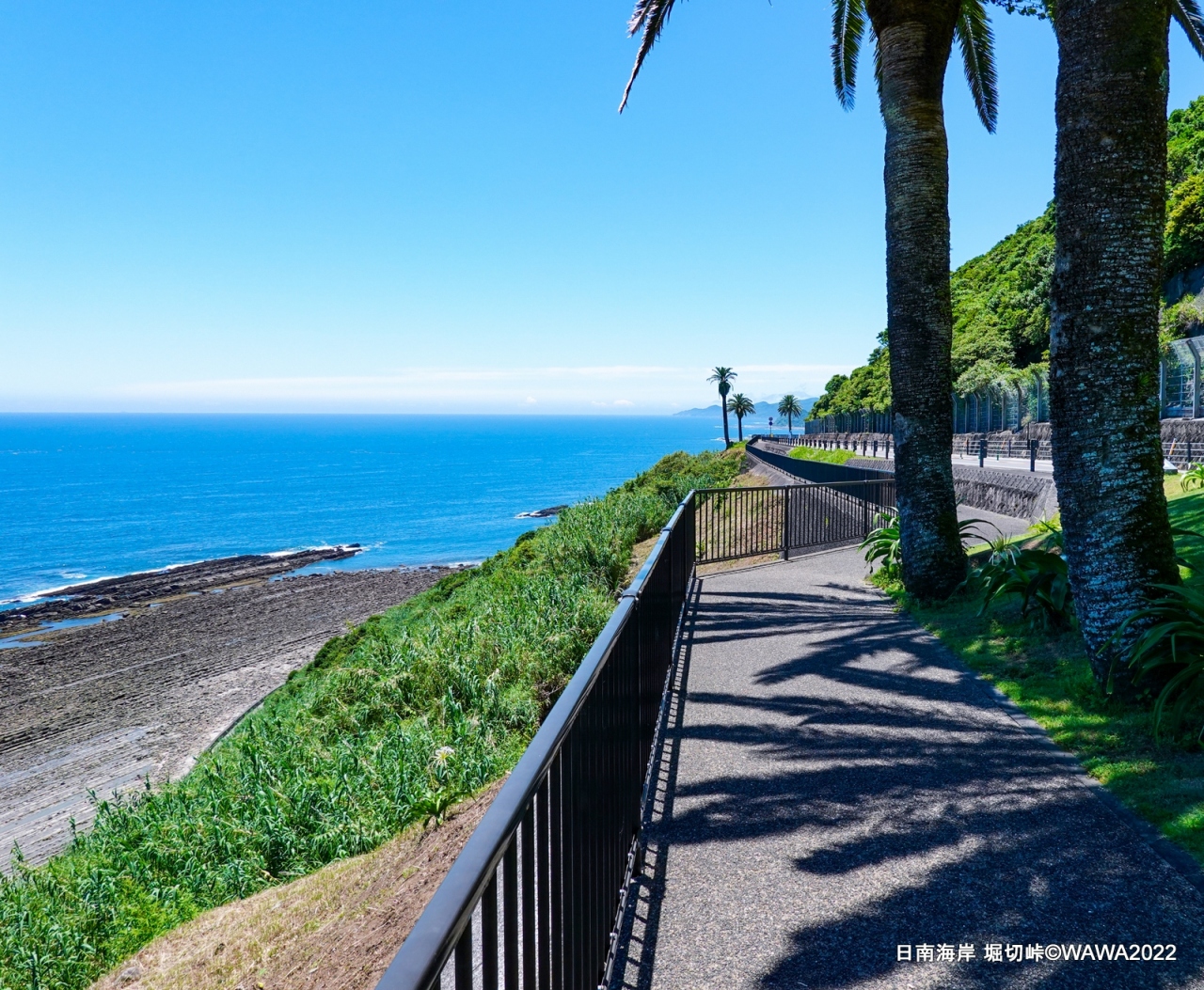 旧フェニックスドライブイン以来のレトロな円筒形建物が目印。海側には立派なウッドデッキの見晴台がありますが、鬼の洗濯岩など見える景色は直前の堀切峠とよく似ていました。