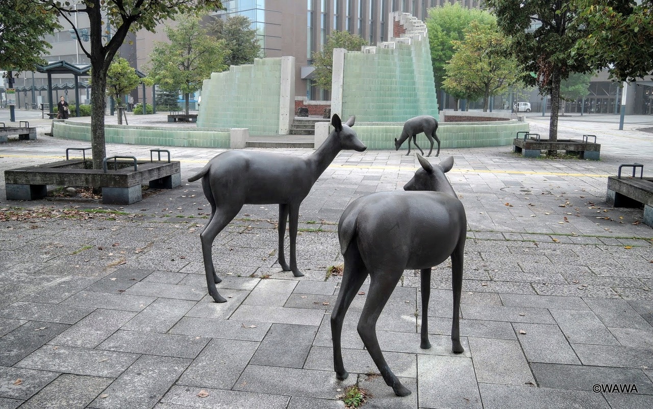 朝の市内散策にレンタサイクルを借りようと思い、駅前のホテルから7時30頃に帯広駅構内にあるレンタサイクル営業所に出向きました。やはり営業時間は朝九時からとのことで、北口駅前にたくさんある鹿や手の野外彫刻を徒歩で見て回り、ホテルにもどりました。