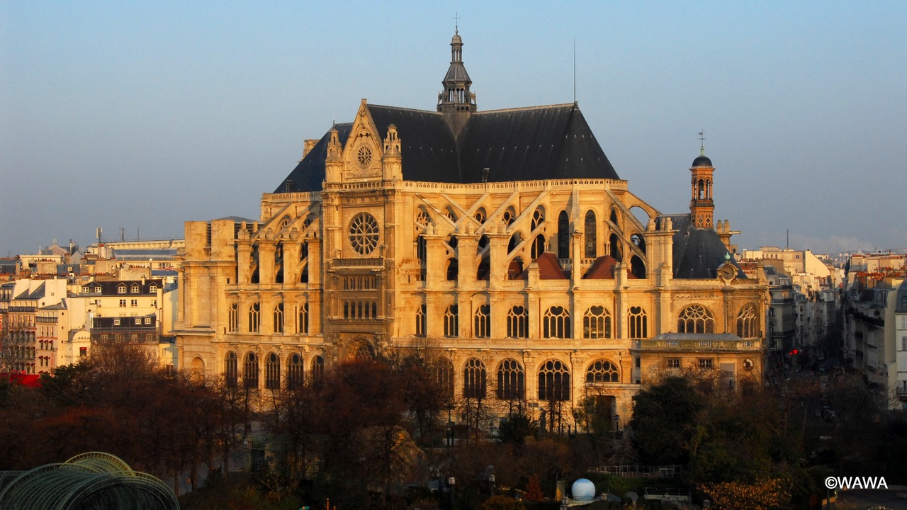 サントゥスタッシュ教会(St.-Eustache)の前には、アンリ・ド・ミラー(Henri de Miller)の彫刻作品「L'ecoute 聞く」が置かれています。